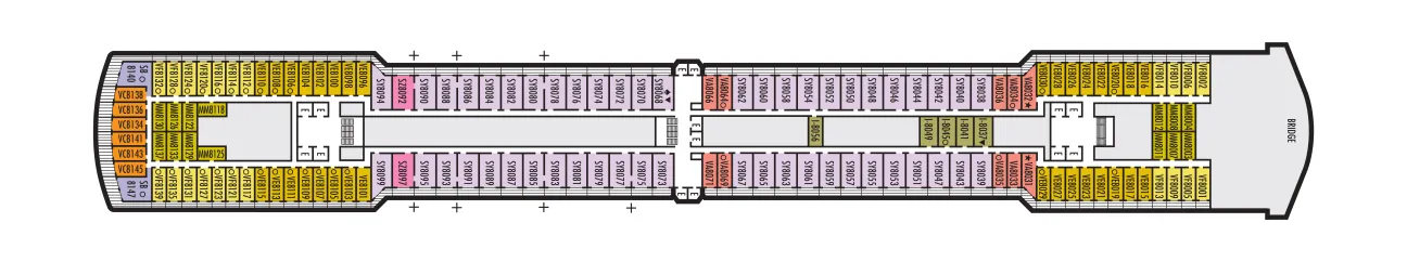- A variety of cabins are available on this deck; see accommodation descriptions for details.