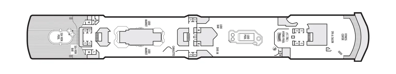 - You're never far from R&R on this deck. The Lido deck pools, Fitness Center and Spa & Salon await a deck above.