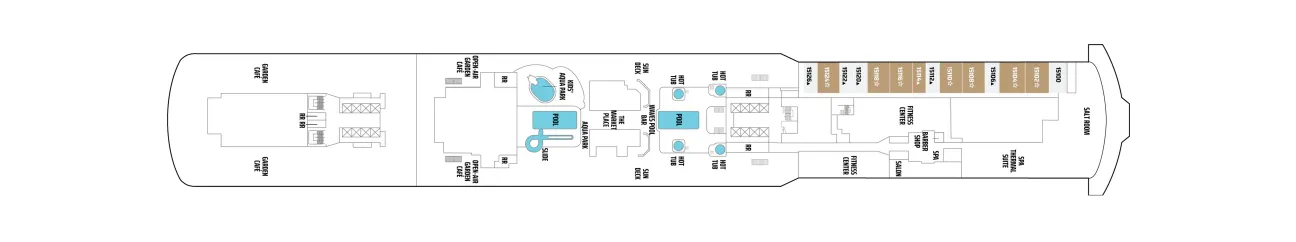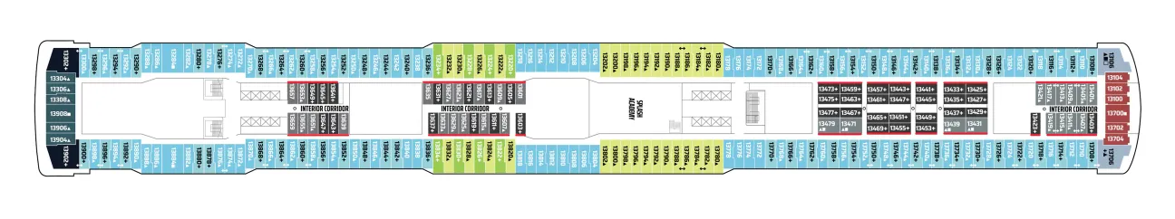 - A variety of cabins are available on this deck; see accommodation descriptions for details.