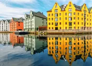 Ride or hike to the top of Mount Aksla for sweeping views of Alesund’s colorful rooftops, shimmering fjords and island-dotted coastline.